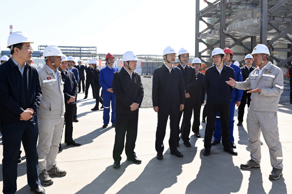 集团公司党组书记、董事长程福波与辽宁省委书记、省人大常委会主任郝鹏,省委副书记、省长李乐成调研精细化工及原料工程项目建设